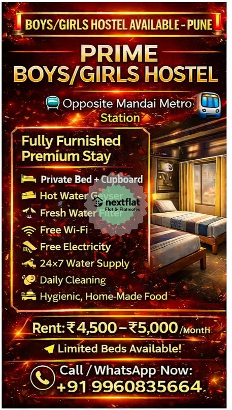 โ Stop Searching PGs โ Start Living Comfortably ๐ Prime Boys/Girls Hostel โ Pune ๐ Opposite Mandai Metro Station โ Private Bed โ Private Cupboard โ Hot Water โ Free Wi-Fi โ Daily Cleaning โ Safe Environment ๐ฐ Only โน5,000/month ๐ 9960835664 ๐ DM / Call NOW before beds are gone! #PunePG #MandaiPG #PuneHostel #BoysHostelPune #GirlsHostelPune #PGNearMetro #MandaiMetro #PuneStudents #WorkingProfessionalsPune #AffordablePGPune #PrimeHostel #PGInPune #PuneRent #HostelNearCollege #PuneCity #MetroLifePune
