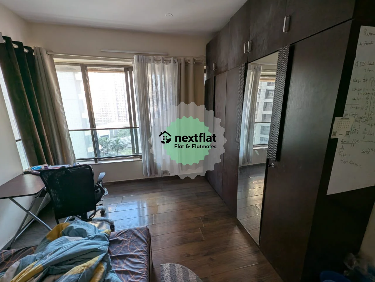 Looking for a male replacement for master bedroom in a fully-furnished 3BHK in a gated society in Ghatkopar (W). Location: Kalpataru Aura, Opposite R-city Mall, Ghatkopar West, Mumbai The flat is at a walking distance (400 mtrs) from Godrej Tech park, Vikhroli and 10mins away from Powai Room includes wardrobe, attached washroom, AC. Rent: 37,000 per month Deposit: 83,333 Maid/cook: ~3.3k per month Setup cost: ~10K The flat is setup with all white goods like washing machine, refrigerator, TV, micro wave etc. Society has 20+ amenities (incl. Gym, swimming pool, TT, squash, club house etc.) along with a huge walking track. There is no owner interference and the other two flat mates are very chill Bike parking available. Tentatively available from 2nd week of February. If interested, ping me on: 8555825969, 6398991874