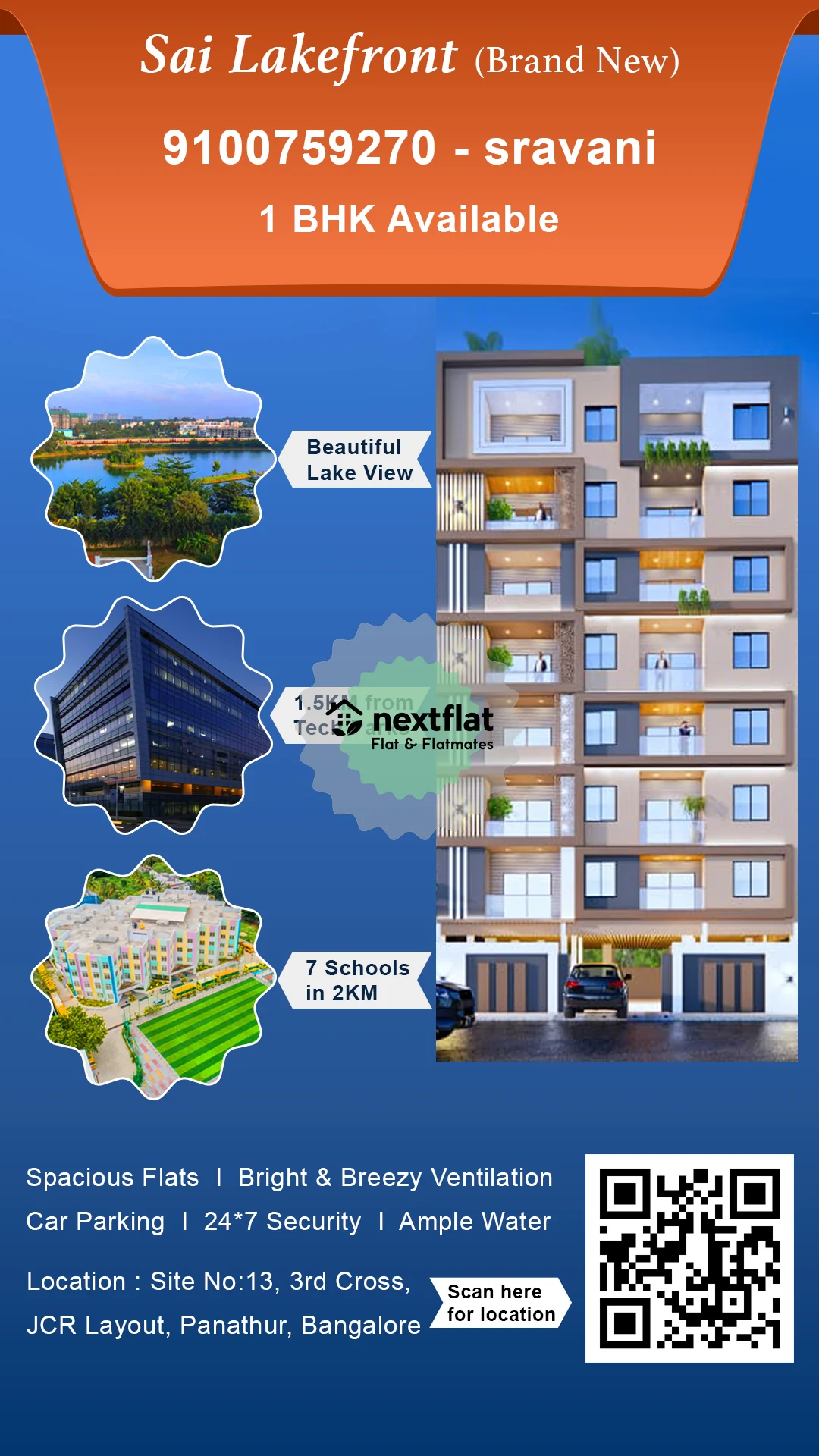 Dear Tenant, 1BHK flat with beautiful Lake view available for rent at Lake Liva Apartment, located at 3rd Cross, JCR Layout, Panathur, Kadubeesanahalli, Marathalli, Bellandur. Only one flat available, call immediately on whatsapp for more details and flat viewing. Contact No. : Sravani whatsapp - 9100759270 Flat Details: • 🏞🏝Beautiful Lake view on terrace along with a standing work station with lake facing. • Location : https://share.google/z8TUIyIvDIY8SiwG1 • Apartment Name: Lake Liva • Configuration: 1 BHK • Rent for Fully Furnished : ₹34,000 per month + ₹1000 Maintanance (Zero Brokarage) • Advance: 3 months Rent • Availability: From March 1st • 💧🌊 Ample of ground water & filtered with softner. no need to wait for tankers. • 🖥️24/7 Power backpack, CCTV coverage and Electrician is available in building. Book and enjoy the beautiful lake & greenery view !