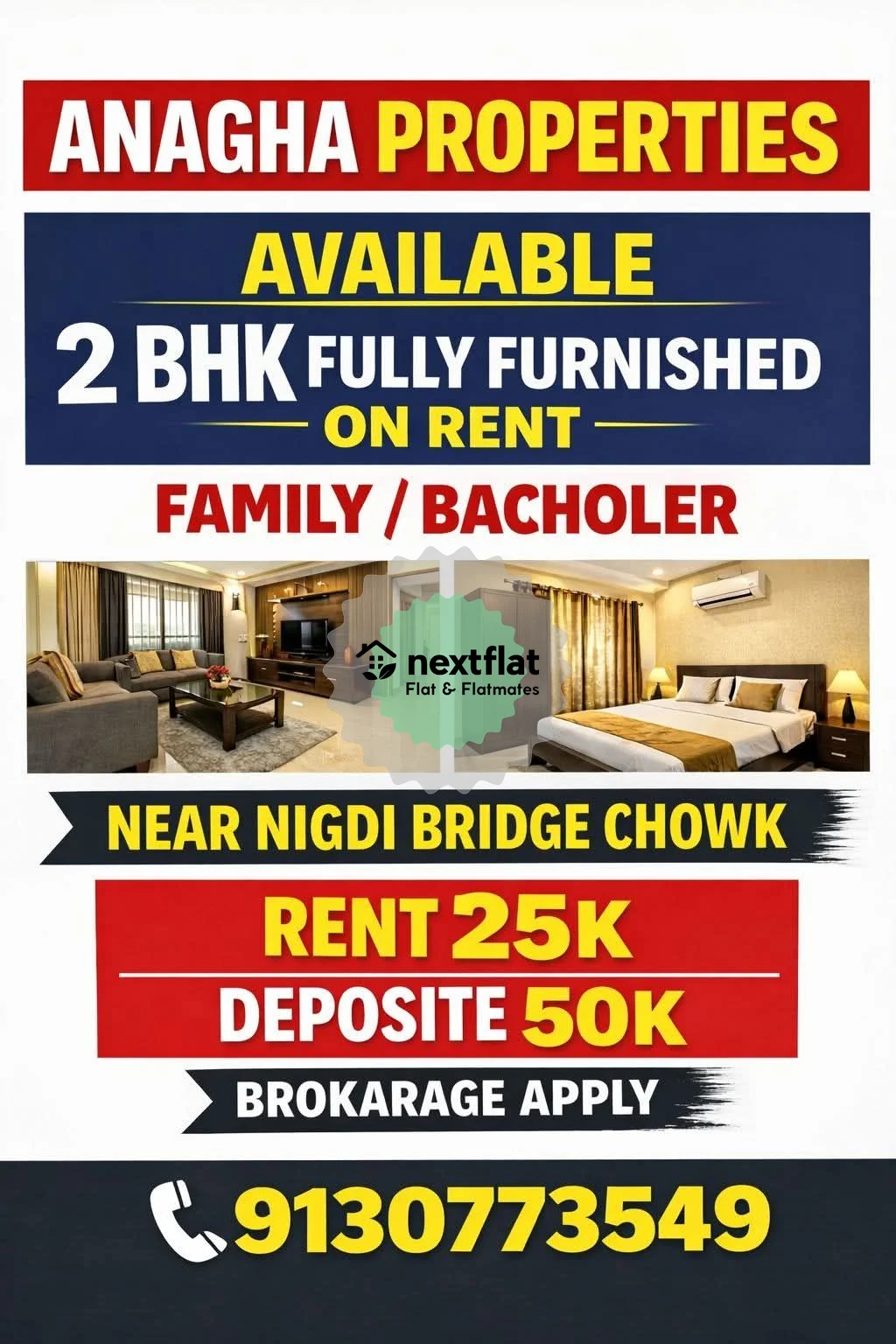 🏡 ANAGHA PROPERTIES ✨ 2 BHK Fully Furnished Flat on Rent ✨ 📍 Near Nigdi Bridge Chowk 👨👩👧👦 Family / Bachelor Allowed 💰 Rent: ₹25,000 🔐 Deposit: ₹50,000 🛋️ Fully Furnished Flat 🏢 Prime Location 🚗 Easy Connectivity 📞 Contact: ********** ⚠️ Brokerage Applicable 📲 Call now for site visit! #2BHKFlat #FlatOnRent #Nigdi #PimpriChinchwad #PCMCProperty #RentalProperty #FullyFurnishedFlat #FamilyFlat #BachelorFlat #AnaghaProperties #PuneRealEstate #PropertyInPune #HouseForRent #RealEstateIndia #GatedSociety #FurnishedFlat #FamilyFlat #ChinchwadProperty #PuneRealEstate #propertydealer #flatonrent #PuneHomes #2BHKOnRent #AnaghaProperties