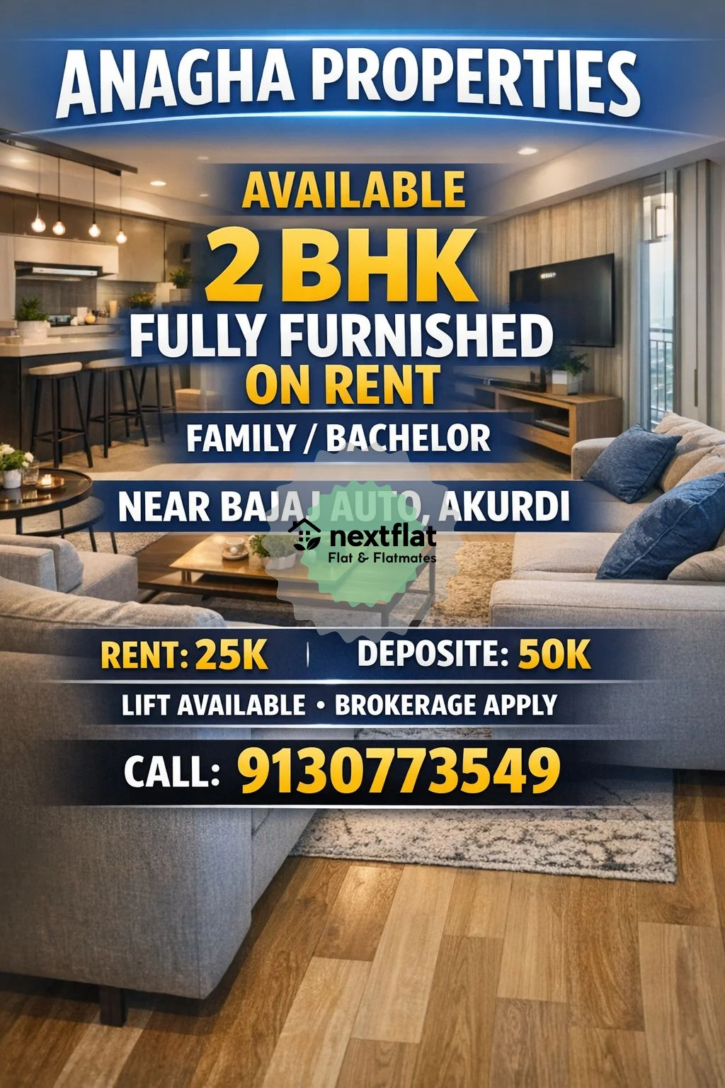 ๐ก ANAGHA PROPERTIES โ PREMIUM RENTAL OFFER โจ 2 BHK FULLY FURNISHED FLAT AVAILABLE ON RENT ๐ Location: Near Bajaj Auto, Akurdi ๐จโ๐ฉโ๐ง Suitable for Family / Bachelor ๐ฐ Rent: โน25,000 ๐ Deposit: โน50,000 ๐ Lift Available ๐ Brokerage Apply ๐ฅ Prime location โ Ready to Move โ Limited Availability! ๐ Call Now: ********** Donโt miss this comfortable fully furnished home near Bajaj Auto. Perfect location with easy connectivity. Book your visit today! #AkurdiRent #PuneRental #2BHKOnRent #FullyFurnishedFlat #PuneRealEstate #AkurdiFlat #FlatOnRentPune #PuneProperty #RentalProperty #AnaghaProperties #PuneHomes #HouseHuntingPune #FamilyFlat #BachelorFlat #RealEstateIndia #PropertyDeal #PuneLiving #DreamHomePune #FlatForRent #ViralPropertyPost